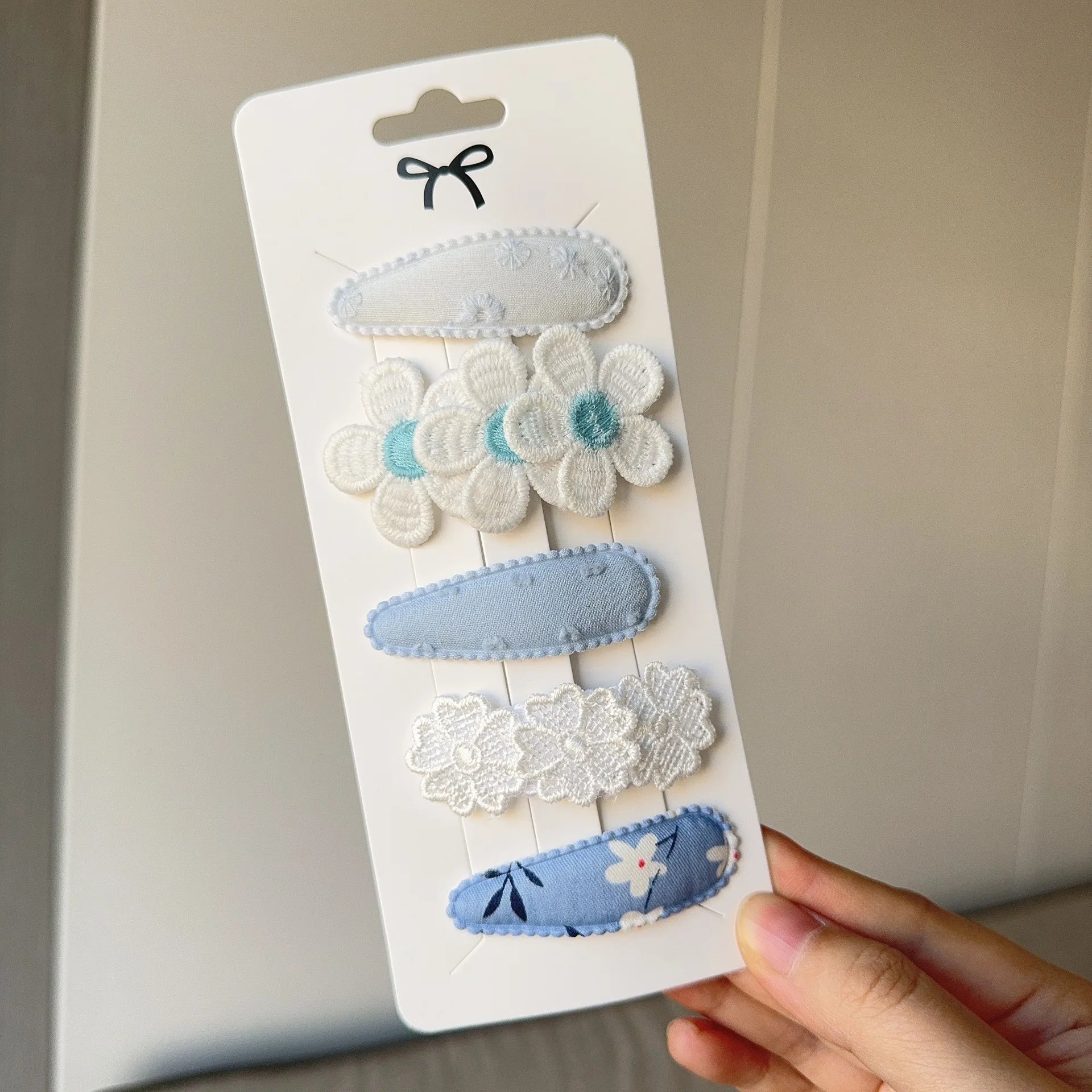 Set includes multiple flower-themed hair clips in sweet, colorful designs