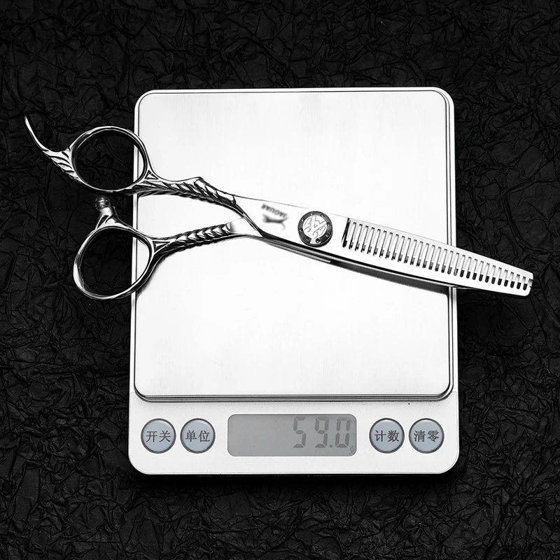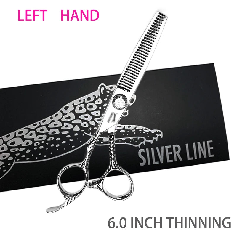 Designed specifically for left-handed stylists, this 6.0-inch professional hair scissors set crafted from premium 440C stainless steel offers exceptional sharpness, control, and comfort for all your cutting and thinning needs.