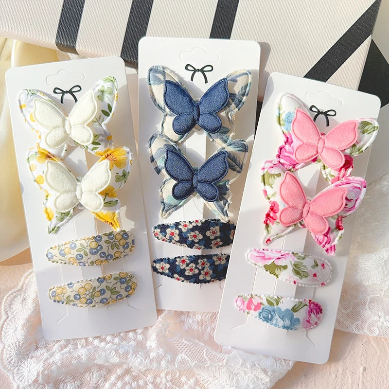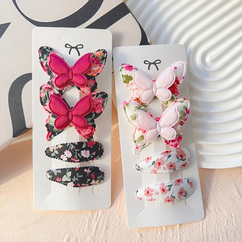 4Pcs/Set Butterfly Hair Clips & BB Clips – Handmade Hair Accessories for Baby Girls