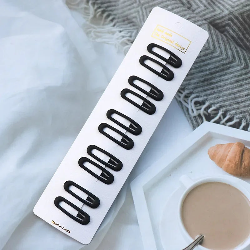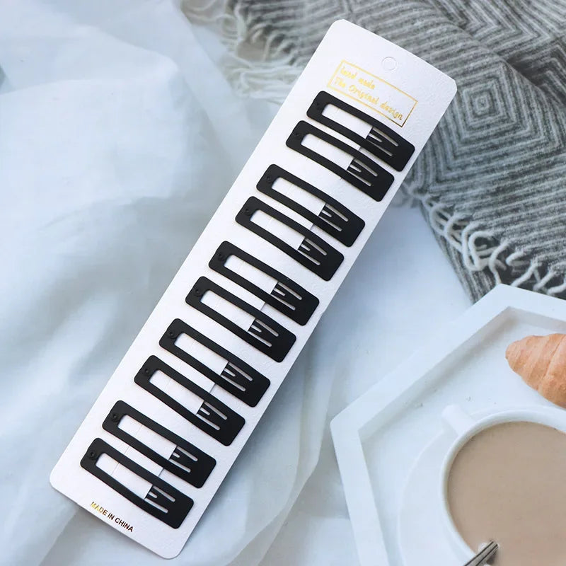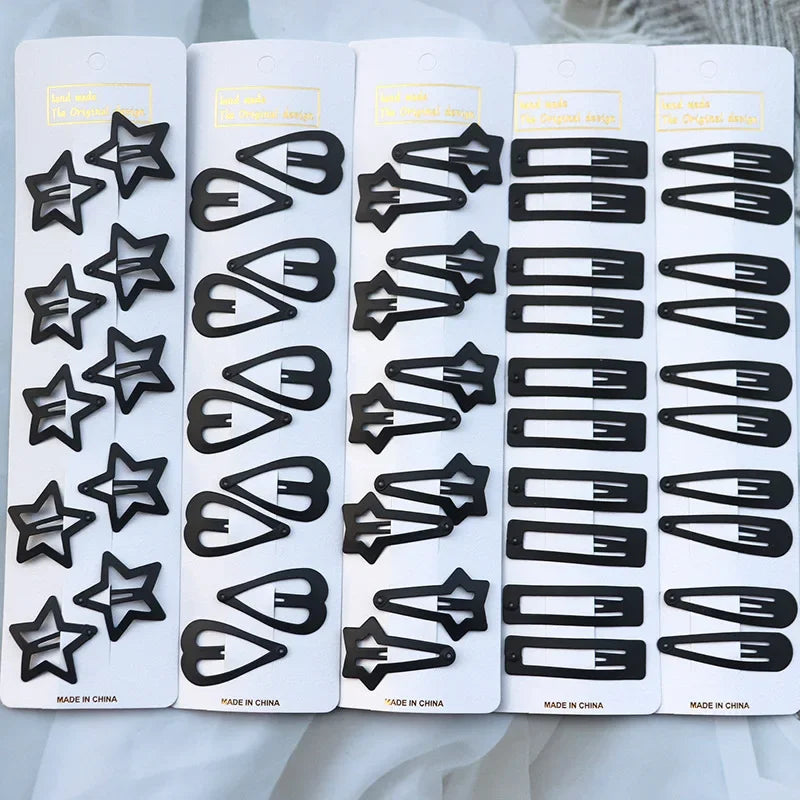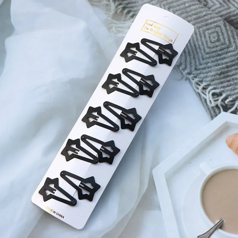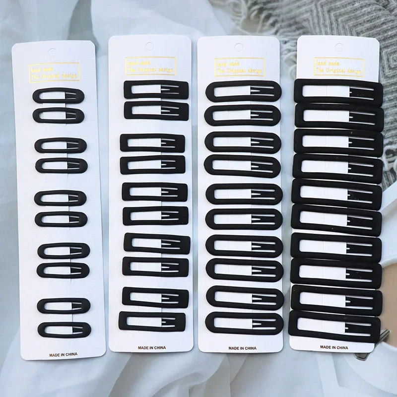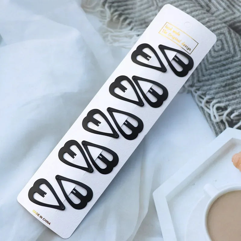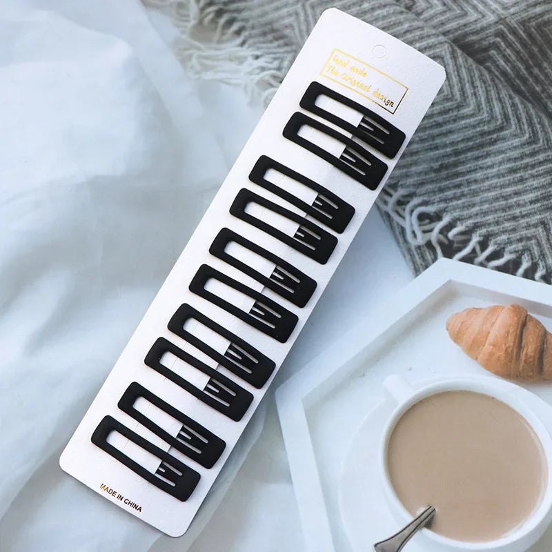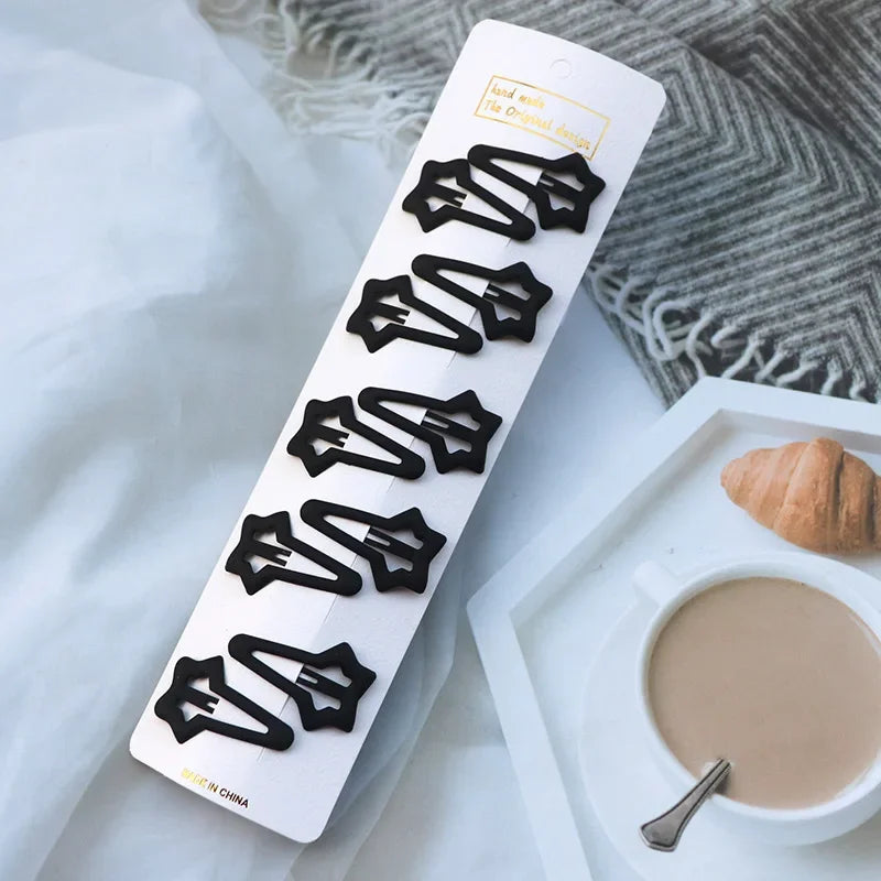 5/10PCS Matte Black Metal Snap Hair Clips – Geometric Non-Slip Barrettes for Women