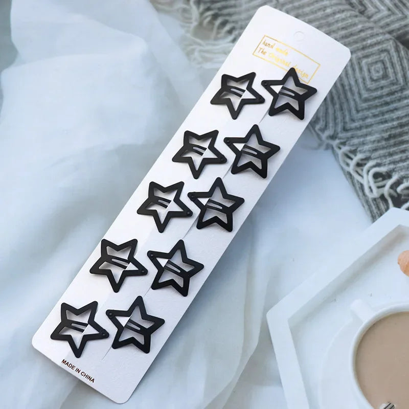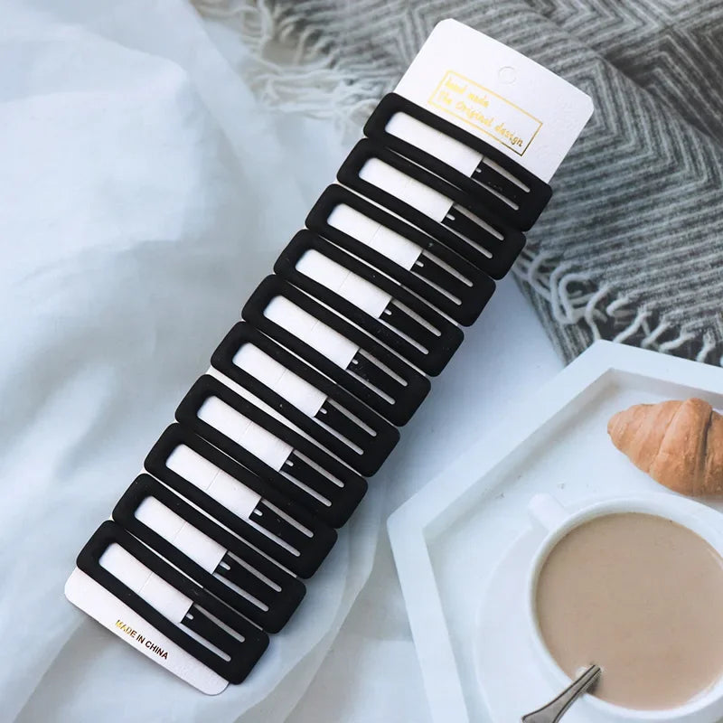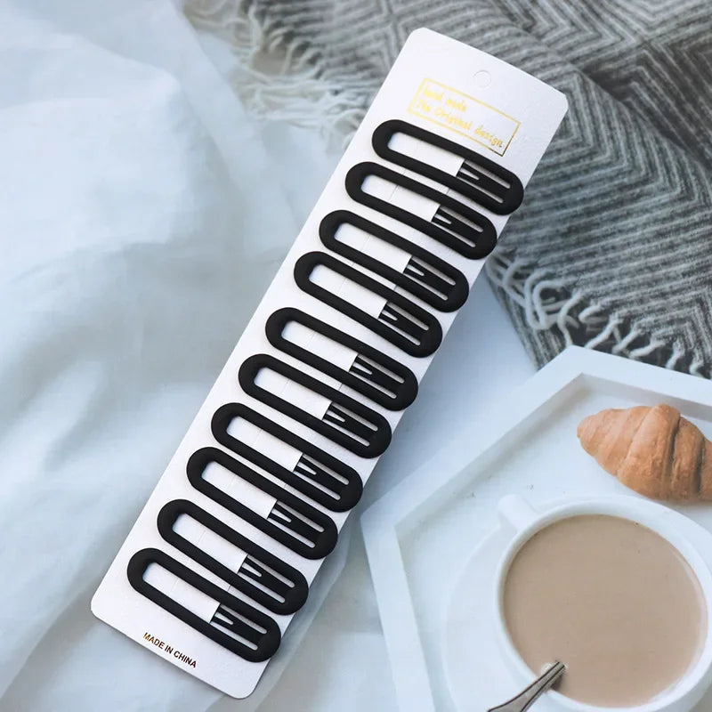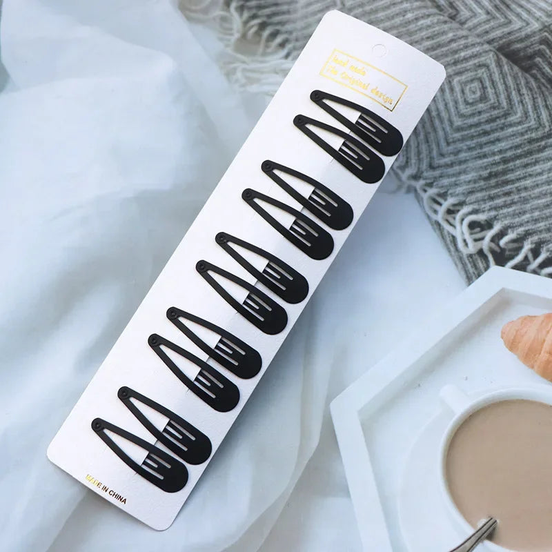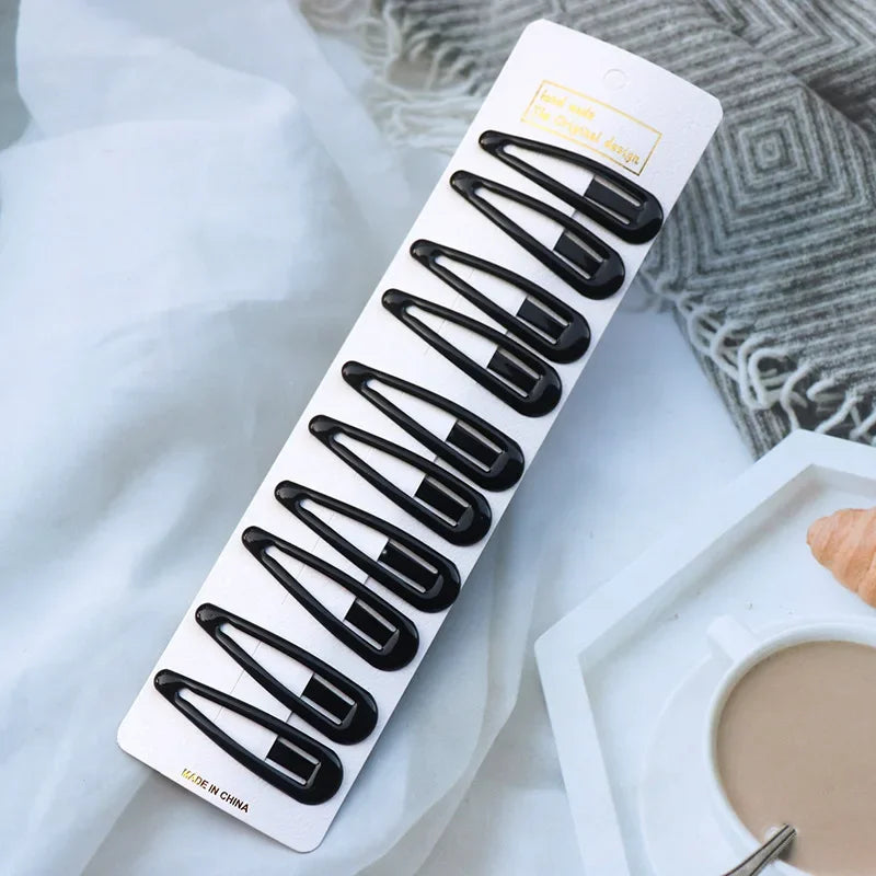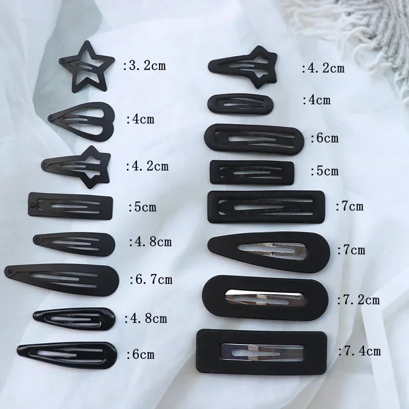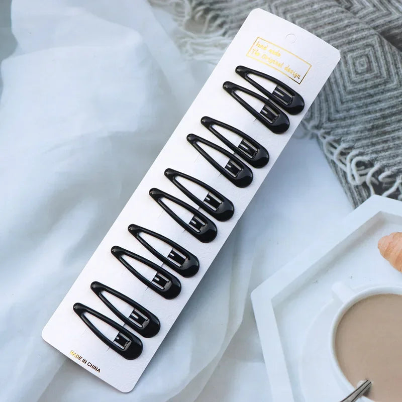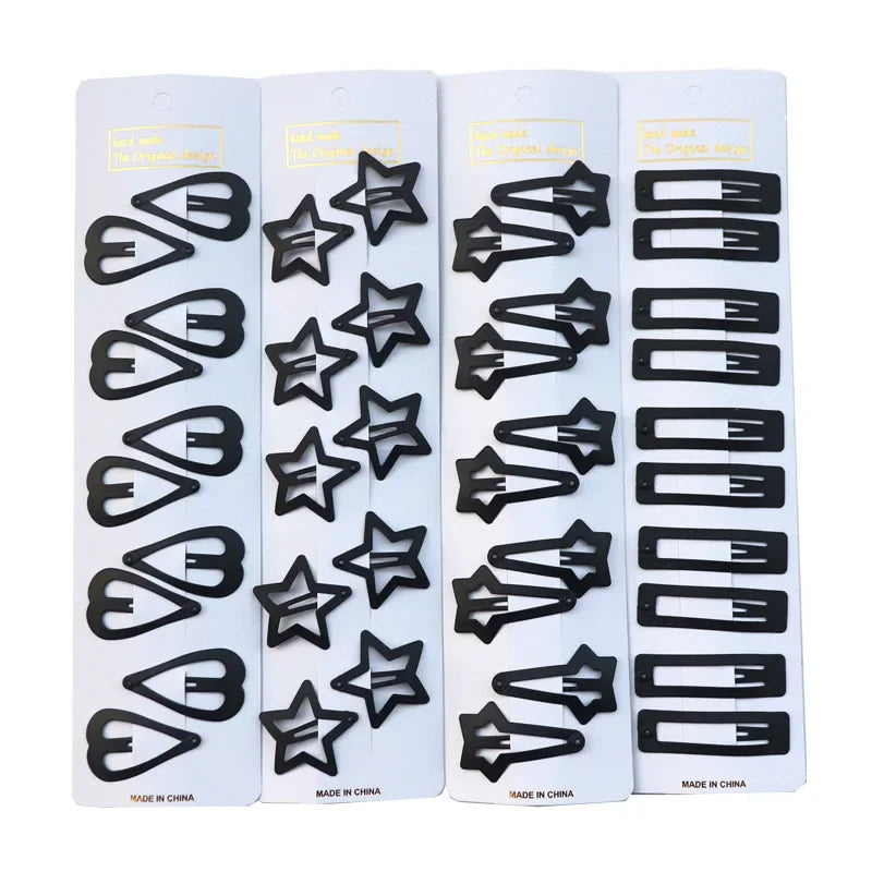 5/10PCS Matte Black Metal Snap Hair Clips – Geometric Non-Slip Barrettes for Women