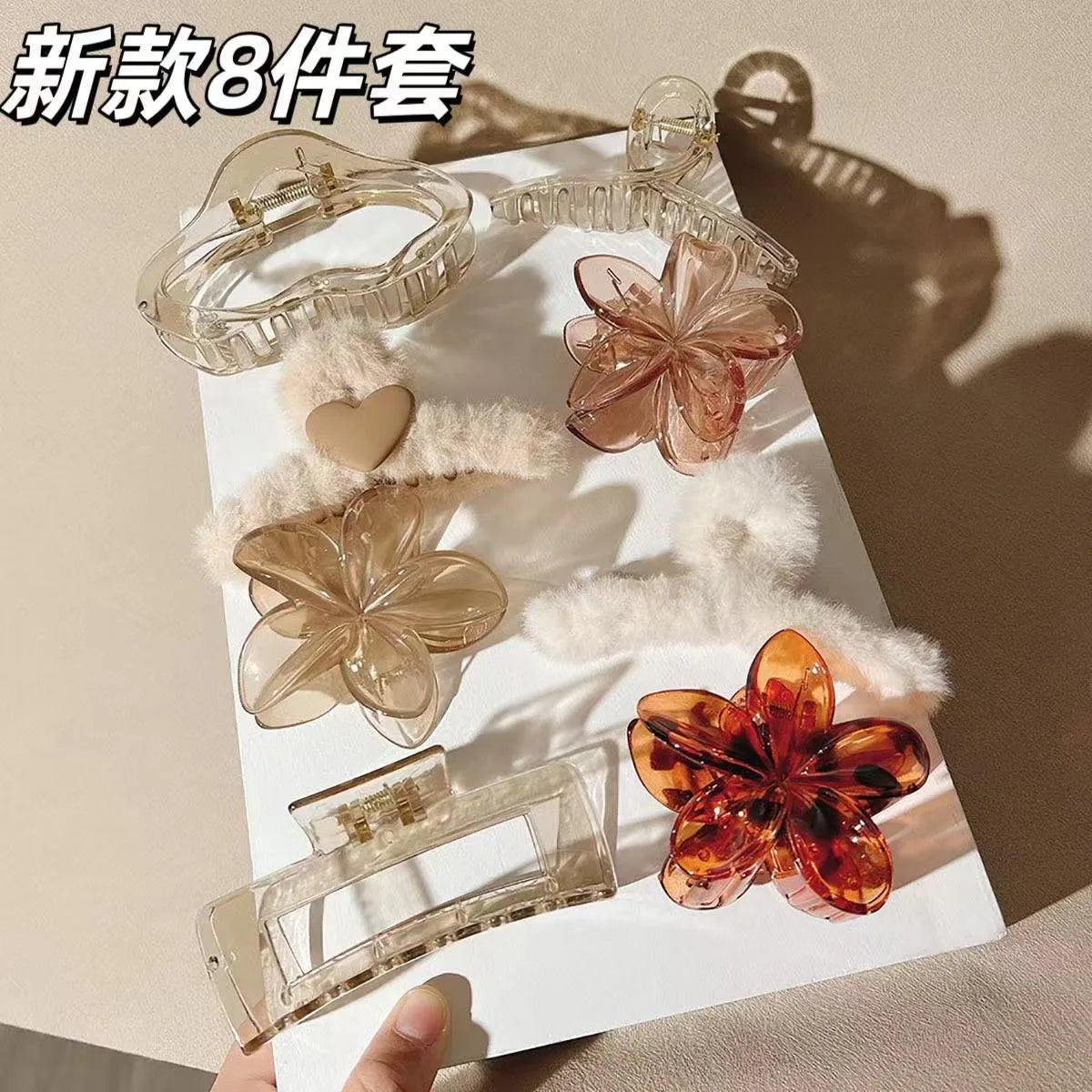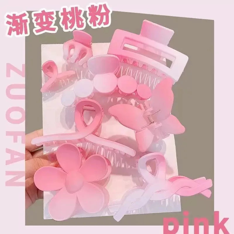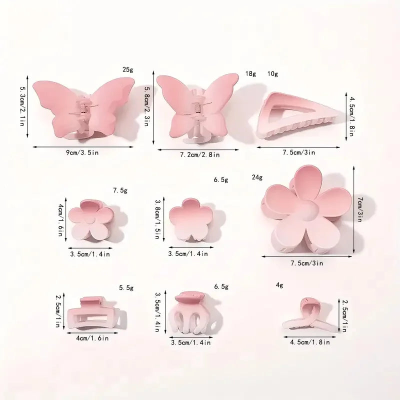 8PCS Polychrome Frosted Shark Claw Clip Set – Sweet Hair Accessories for Women