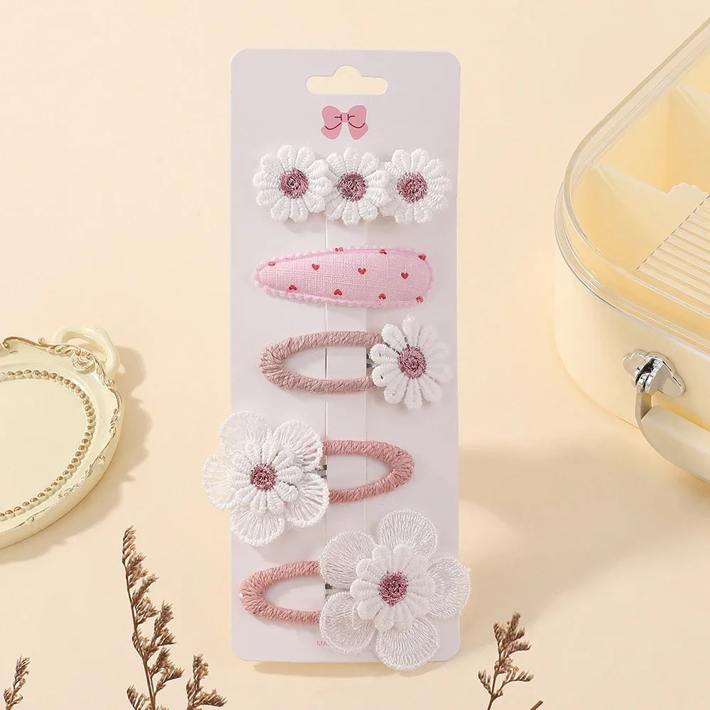 Set includes 5 unique clips with daisy flowers, rainbow bows, and sweet designs