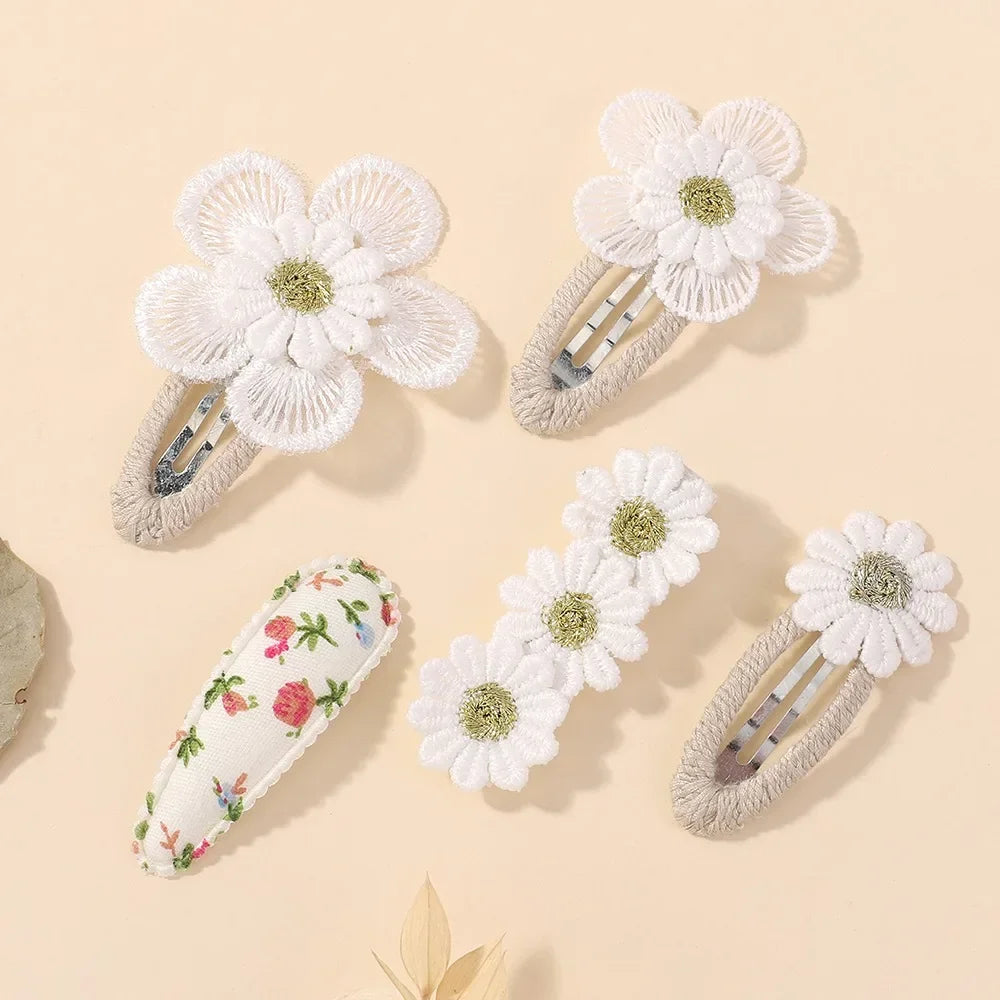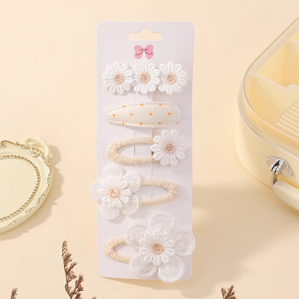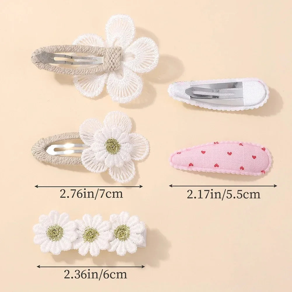 RAINBOW BOWS 5Pcs Daisy Flower Hair Clip Set – Sweet Hair Accessories for Girls