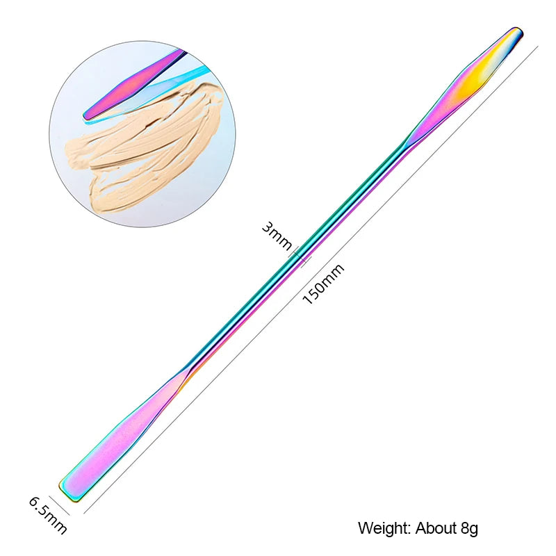 Blend, mix, and create effortlessly with this acrylic palette tool kit — featuring a clear mixing tray, spatula, and rod perfect for foundation, gel polish, eyeshadow, and cream-based cosmetics.