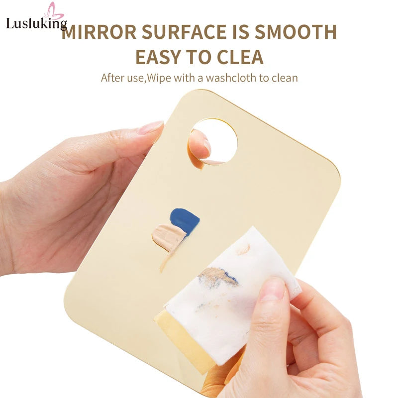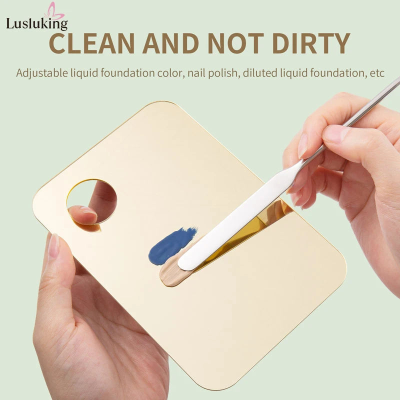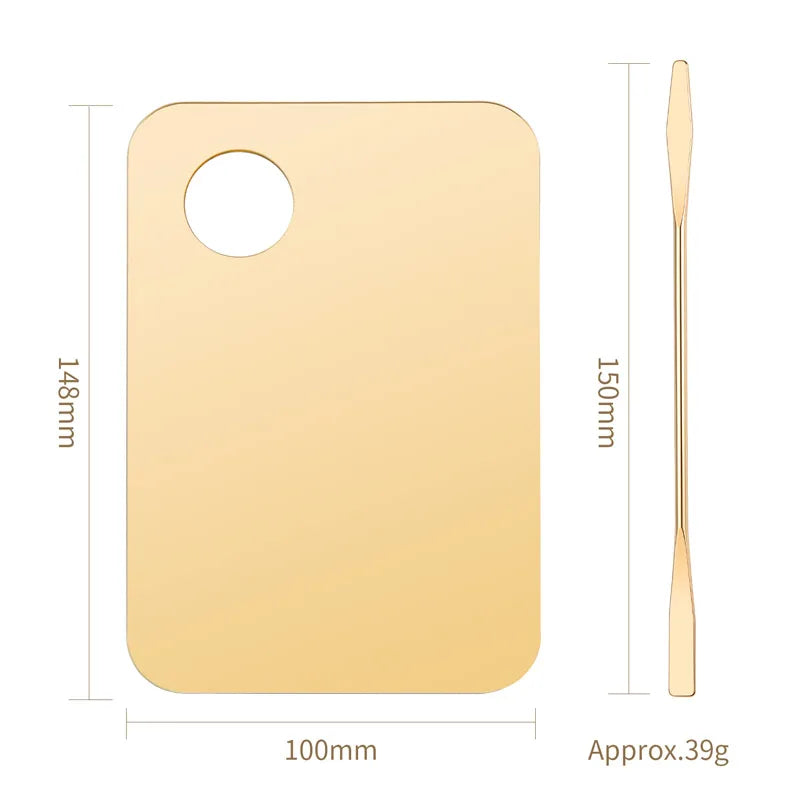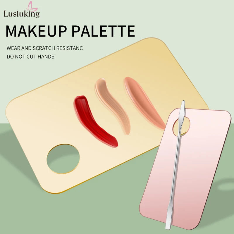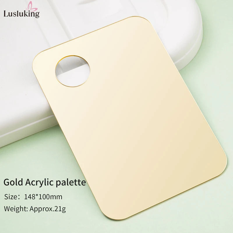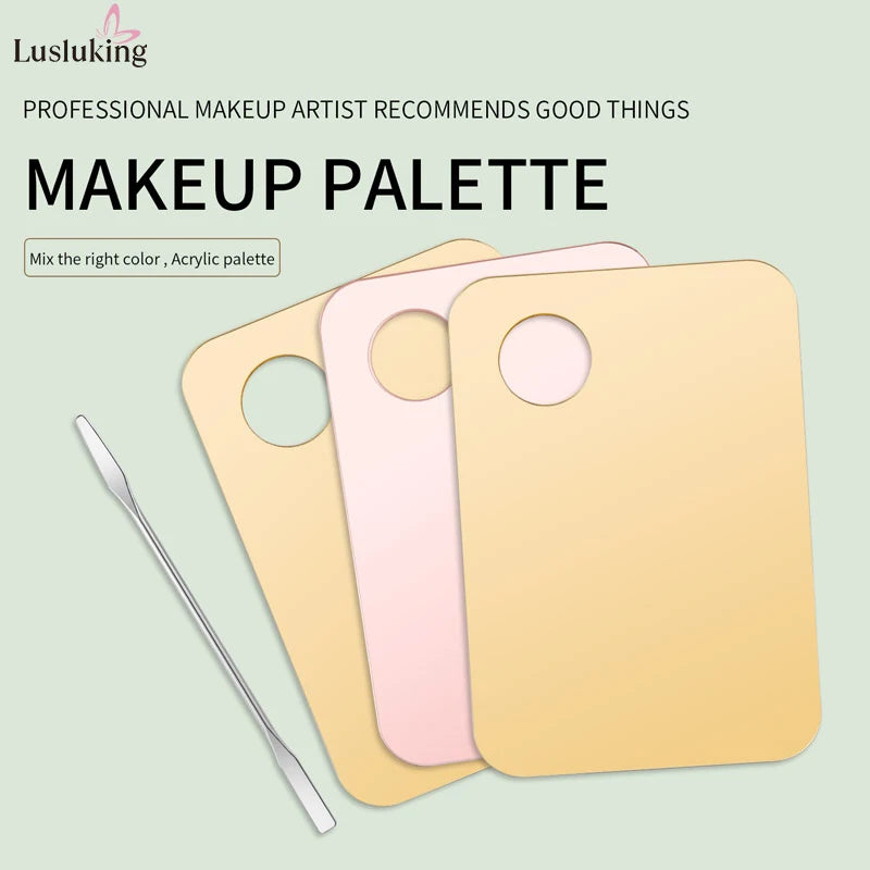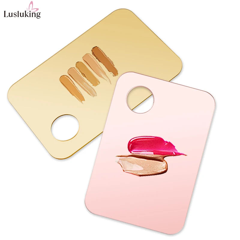 Add a touch of elegance to your beauty routine with this gold or pink acrylic mixing palette set — perfect for blending foundation, creams, eyeshadow, or nail polish with precision and style.