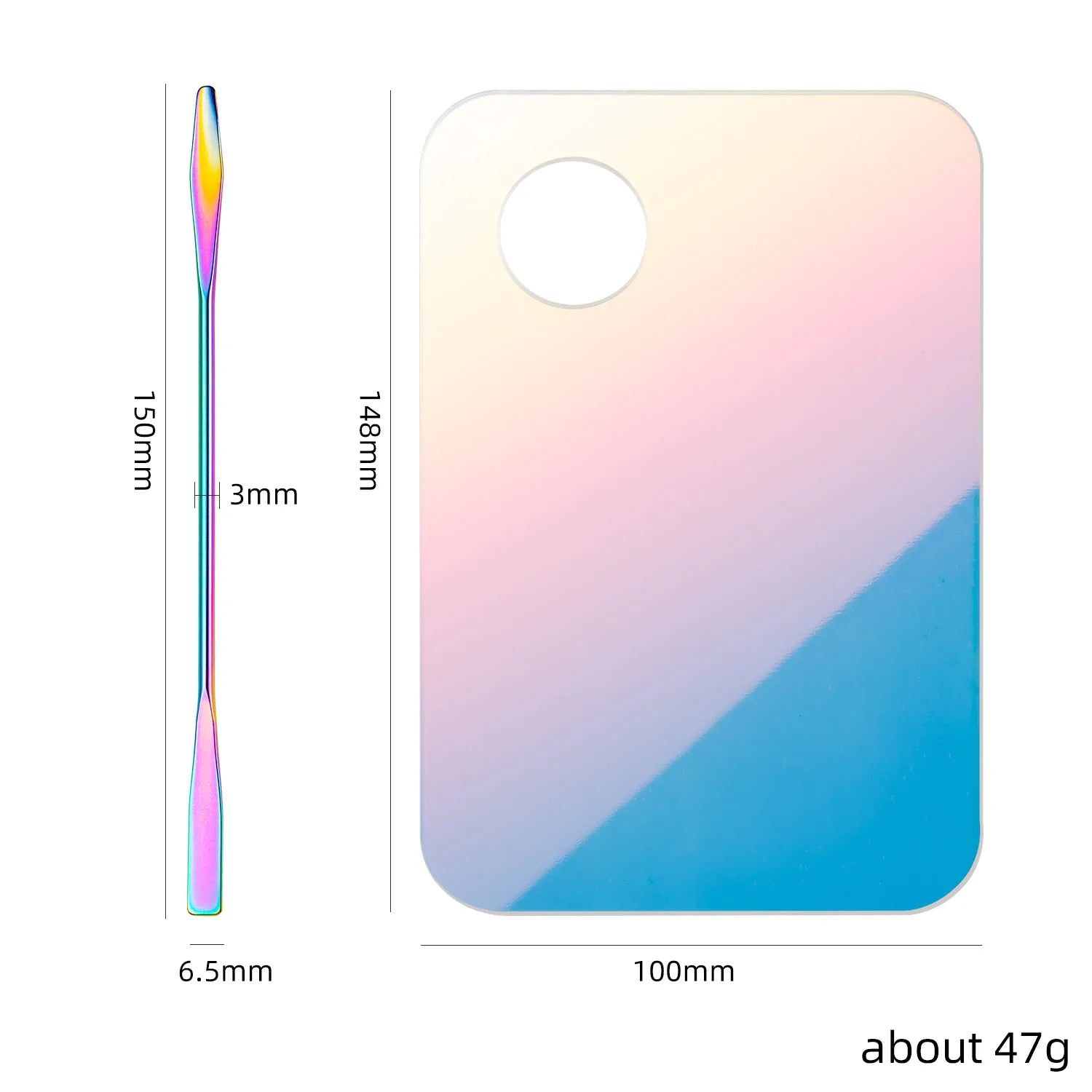 Set includes 1 acrylic palette and 1 stainless steel mixing rod