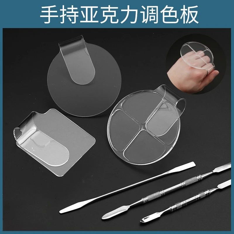 Blend your favorite beauty products with ease using this round handheld acrylic palette set — featuring four mixing grids, a color bar, and spatula for precise foundation, eyeshadow, and liquid makeup blending.