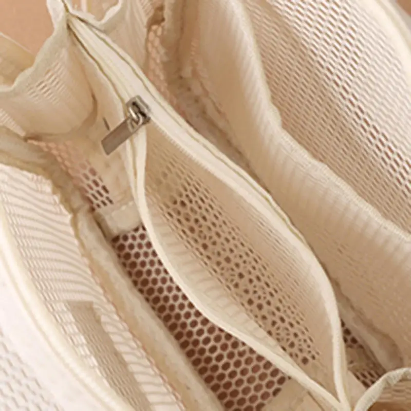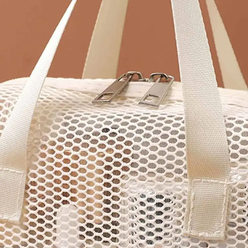 Durable mesh fabric with reinforced stitching and smooth zipper closure for everyday travel and storage.