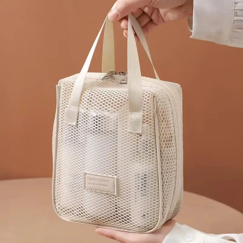 Large Capacity Mesh Cosmetic Storage Bag – Transparent Travel Toiletry Pouch