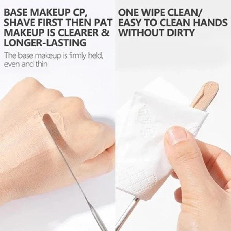 Achieve flawless blends with this stainless steel makeup mixing palette and spatula set — a must-have tool for hygienic and precise mixing of foundation, lipstick, eyeshadow, and more.