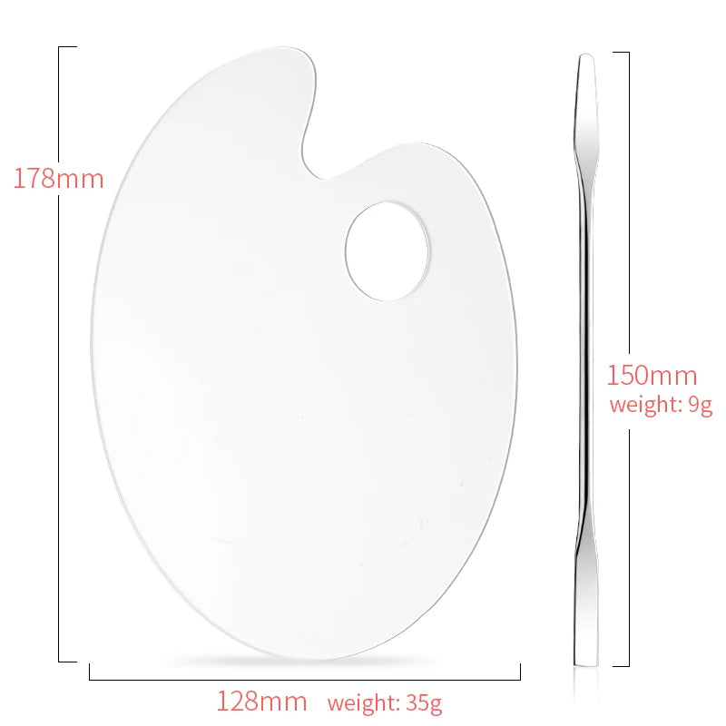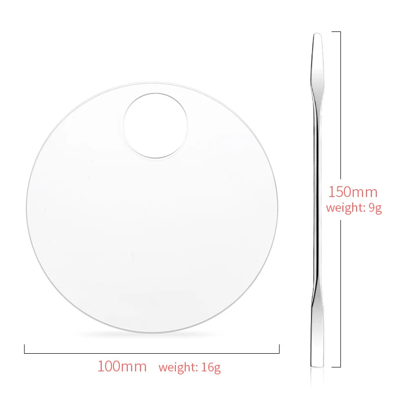 • Set includes 1 clear acrylic palette and 1 metal mixing rod