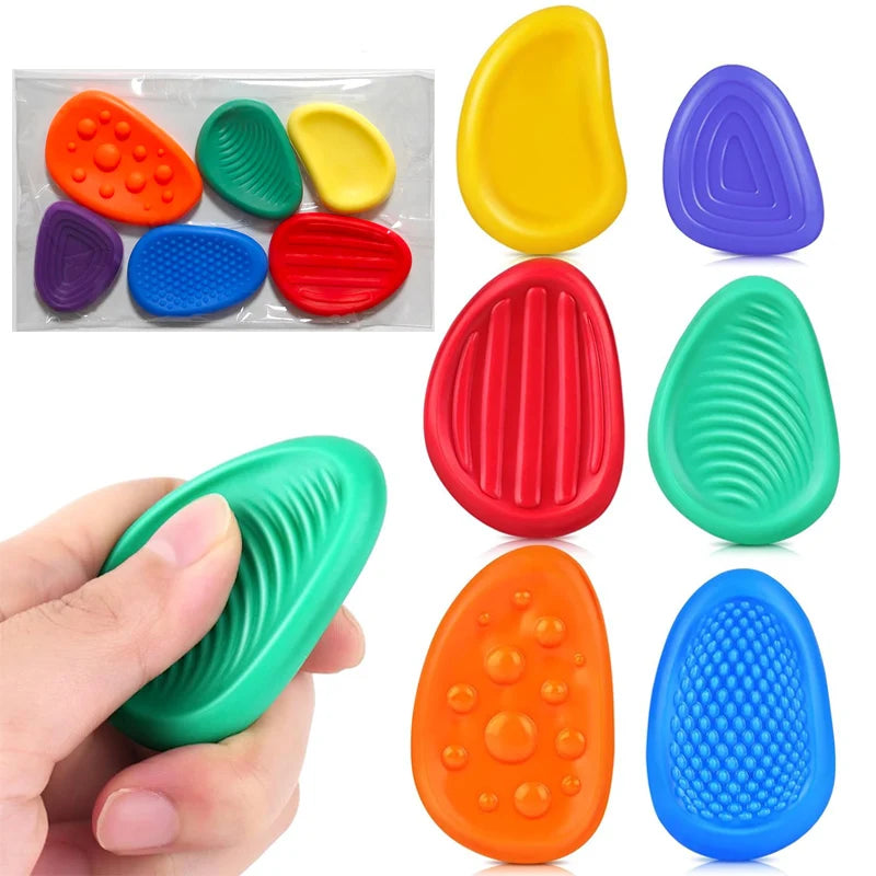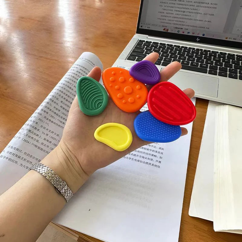 Soothe stress and sharpen focus with this set of 6 Fidget Sensory Stones, designed with textured silicone surfaces to calm the mind — perfect for kids, adults, and anyone managing anxiety, ADHD, or autism.
