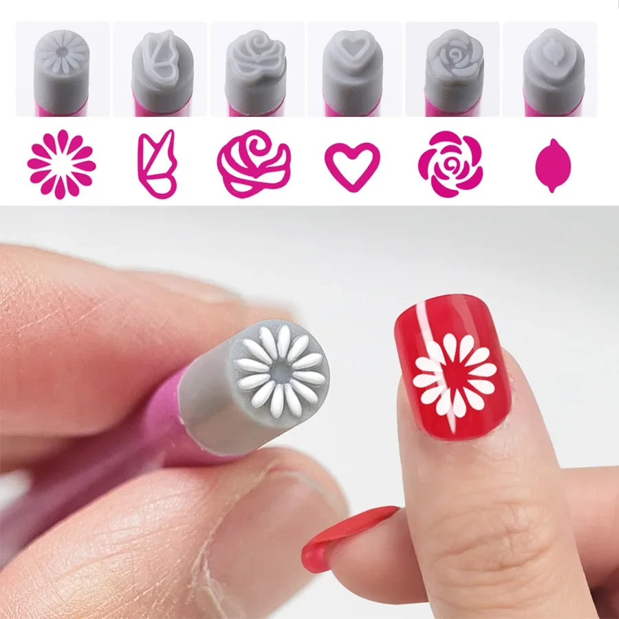 Create charming nail art effortlessly with this 4 or 6-piece nail art stamp pen set — featuring built-in floral, butterfly, and pattern designs for quick, mess-free stamping and beautiful DIY manicures.