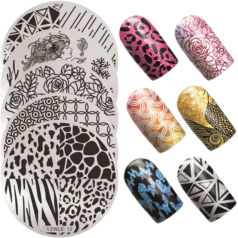 Add creative flair to your nails with these DIY nail art stamping plates — featuring a variety of floral, geometric, animal, and leaf patterns perfect for polish printing and custom manicures.