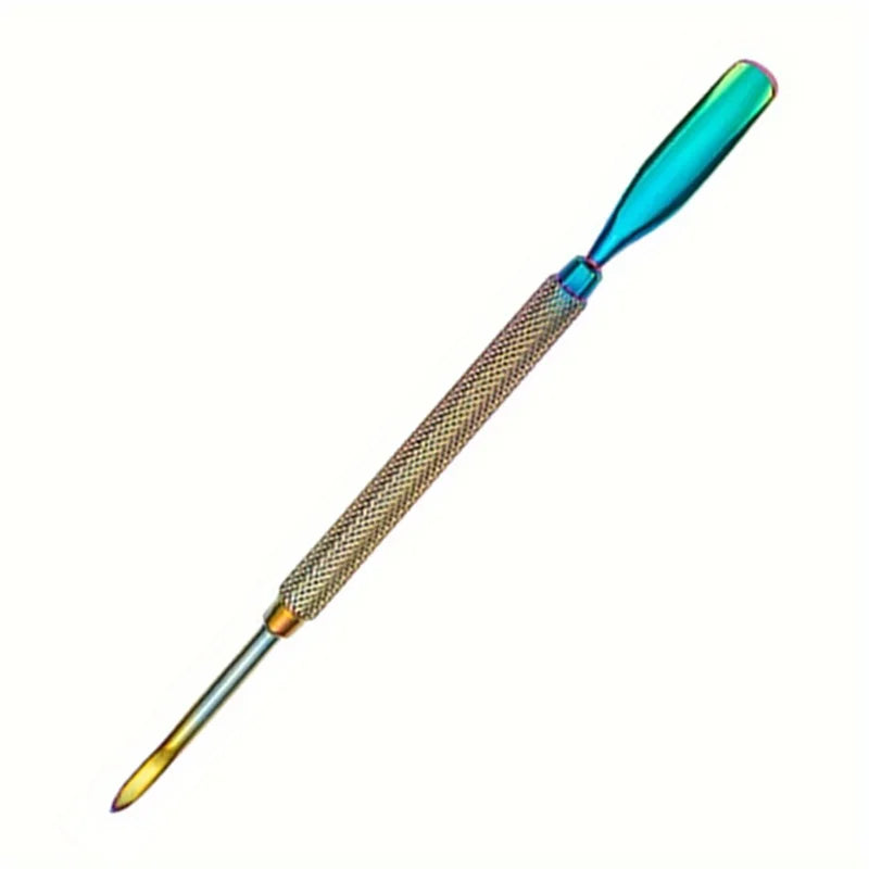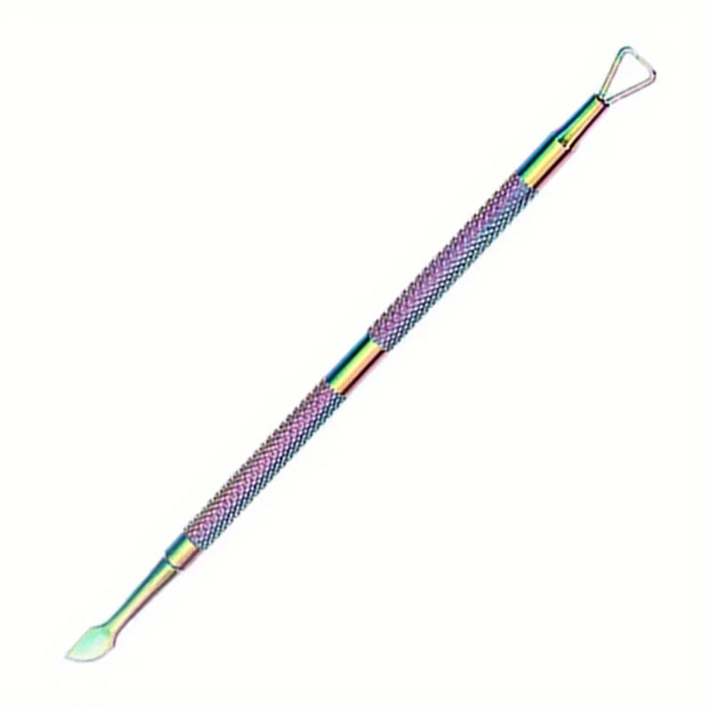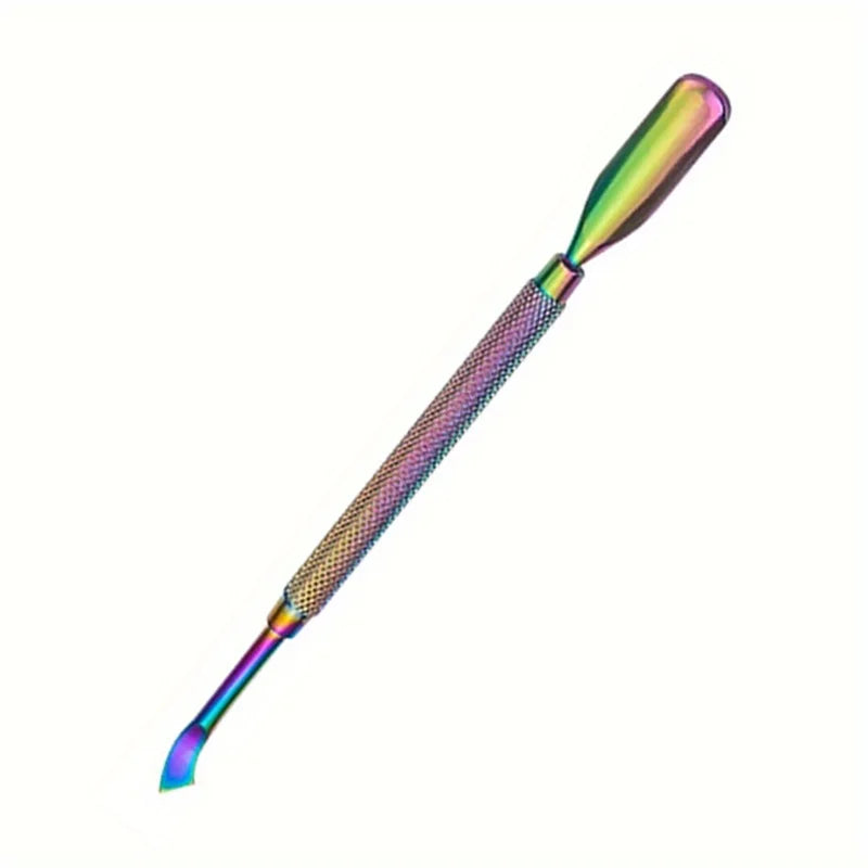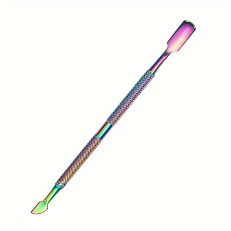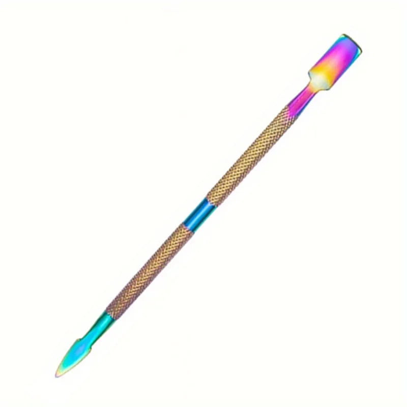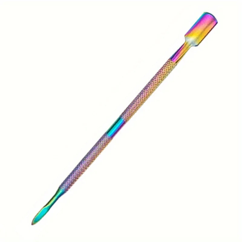 Maintain clean, well-groomed nails with this multicolor double-ended stainless steel cuticle pusher — designed to gently push back cuticles and remove dead skin for a polished manicure or pedicure.