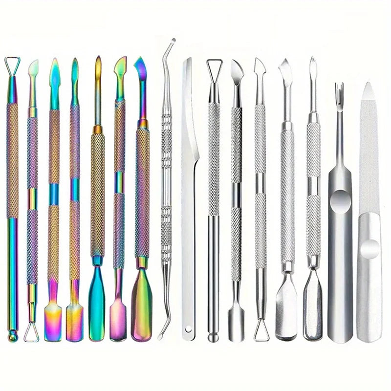 Multicolor Double-Ended Stainless Steel Cuticle Pusher – Dead Skin Remover for Manicure & Pedicure