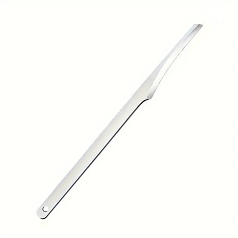 Dual-ended design: one curved end for pushing cuticles, one flat/slanted end for removing dead skin