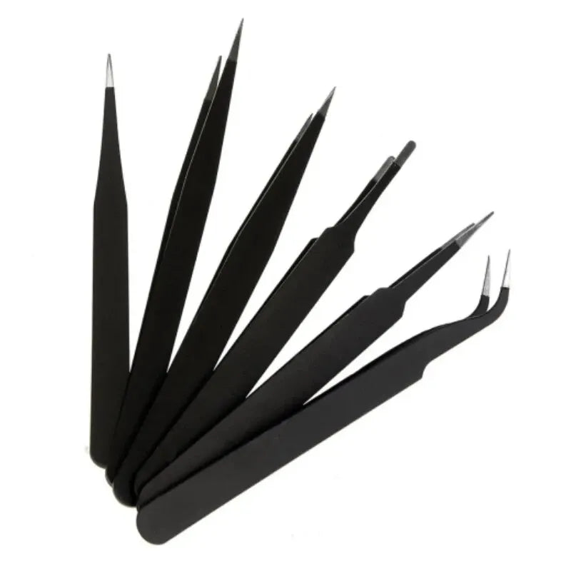 Stainless Steel Curved & Straight Black Tweezer Set – Nail Art Rhinestones & Beads Picking Tool