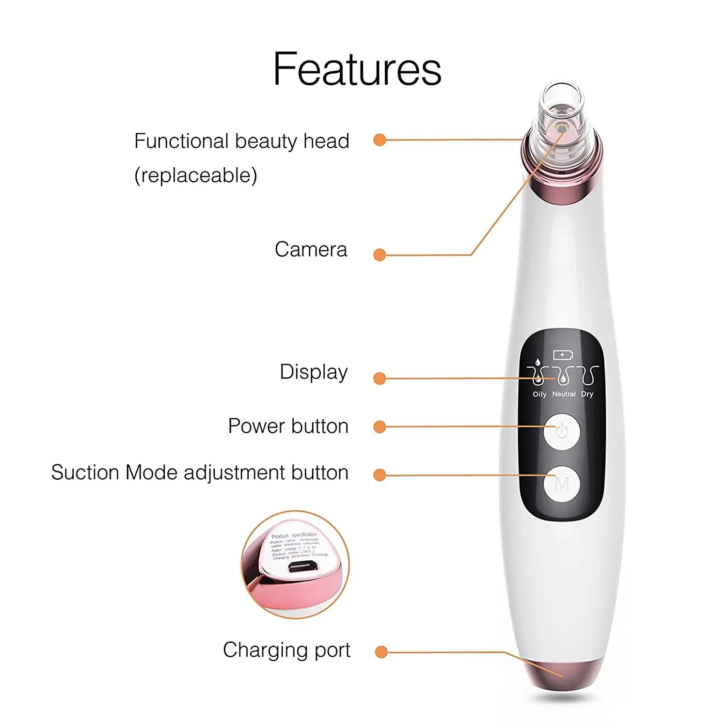 • Includes 5 interchangeable probes for deep pore cleansing, exfoliation, and oil control