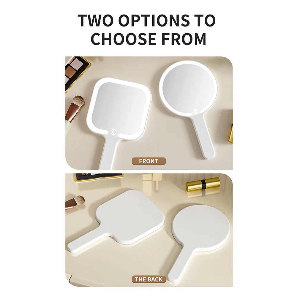 3-Color LED Makeup Mirror – Handheld, Touchscreen, Adjustable Brightness & Portable